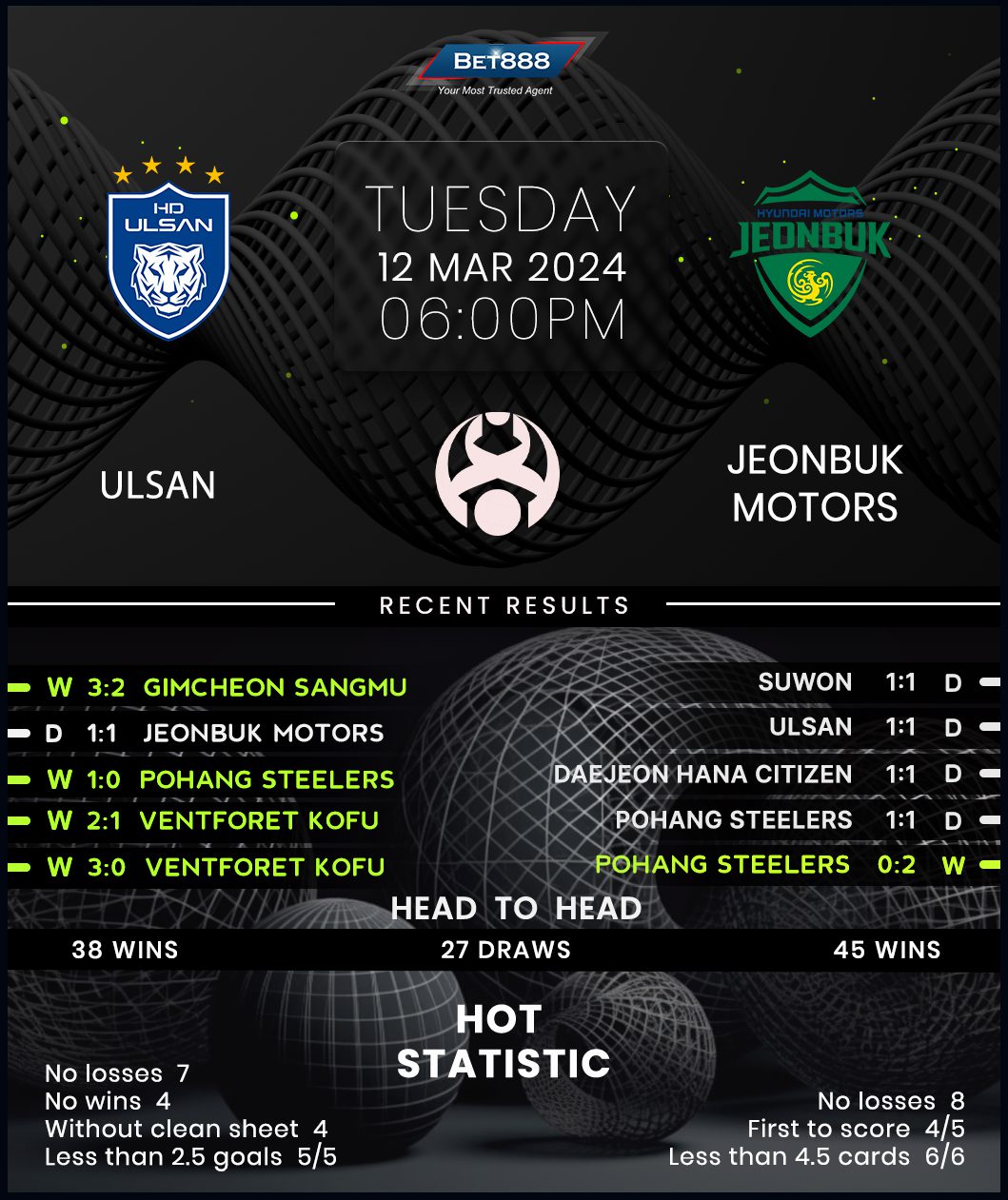 Ulsan Munsu Football Stadium is the venue as Ulsan Hyundai and Jeonbuk Motors go head-to-head in a crunch AFC Champions League quarter-final clash.