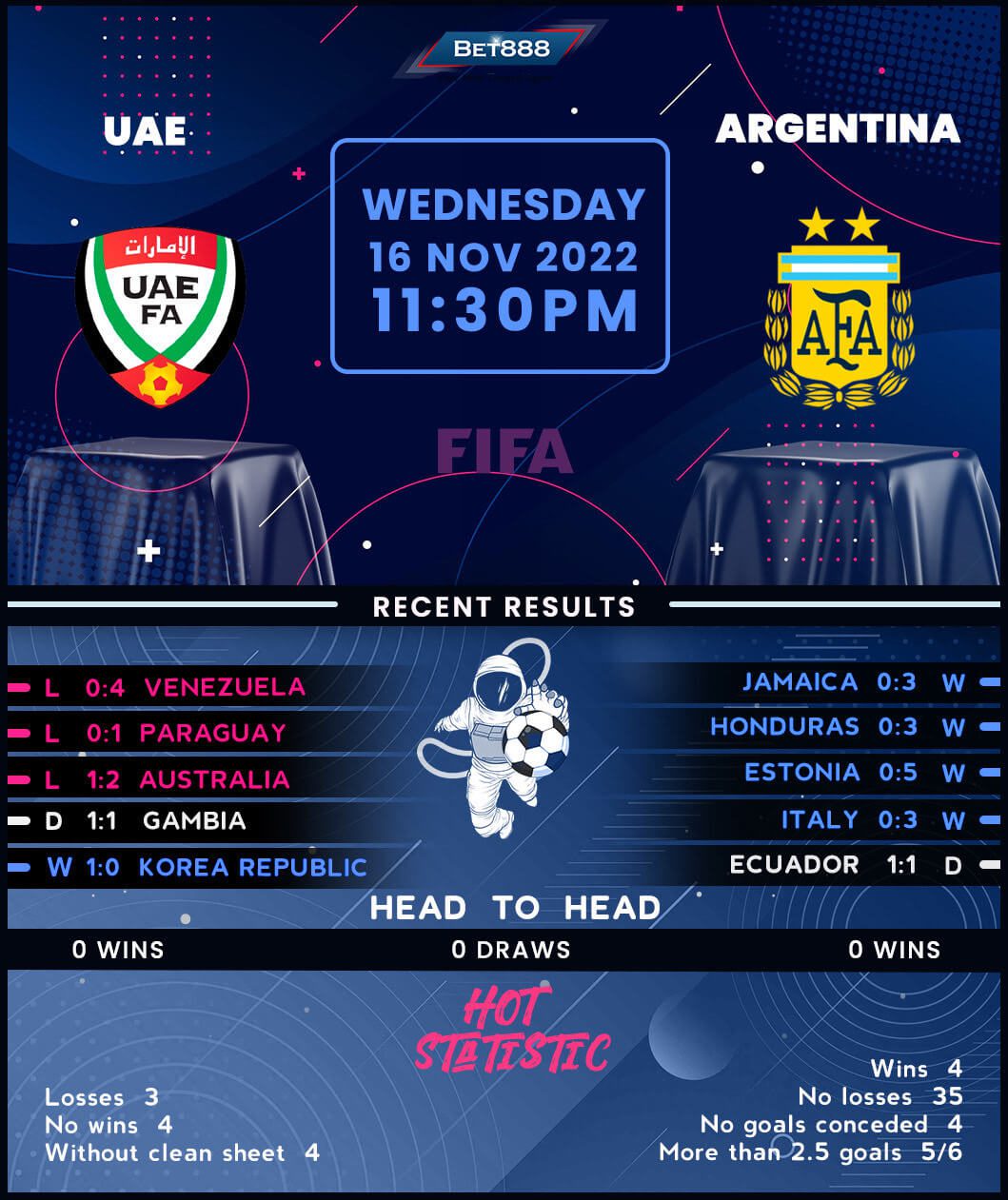 In stark contrast to the UAE’s abysmal run of form, Argentina take this trip on the back of a record-breaking 33-match unbeaten streak, stretching back to the 2019 Copa America semi-final defeat at the hands of Brazil. Dubbed the top candidates to cover themselves with World Cup glory, ‘La Albiceleste’ have won their last four internationals by 3+ goals ‘to nil,’ highlighting their determination to win the Qatar showpiece. Except for a 1-1 draw at Ecuador when they already had a World Cup berth in the bag, Lionel Scaloni’s men have won all seven remaining matches in 2022, including six without conceding a single goal. But with three of Argentina’s last five away games containing under 2.5 goals and star members likely to be careful not to pick up injuries, a low-scoring affair could be the order of the day.