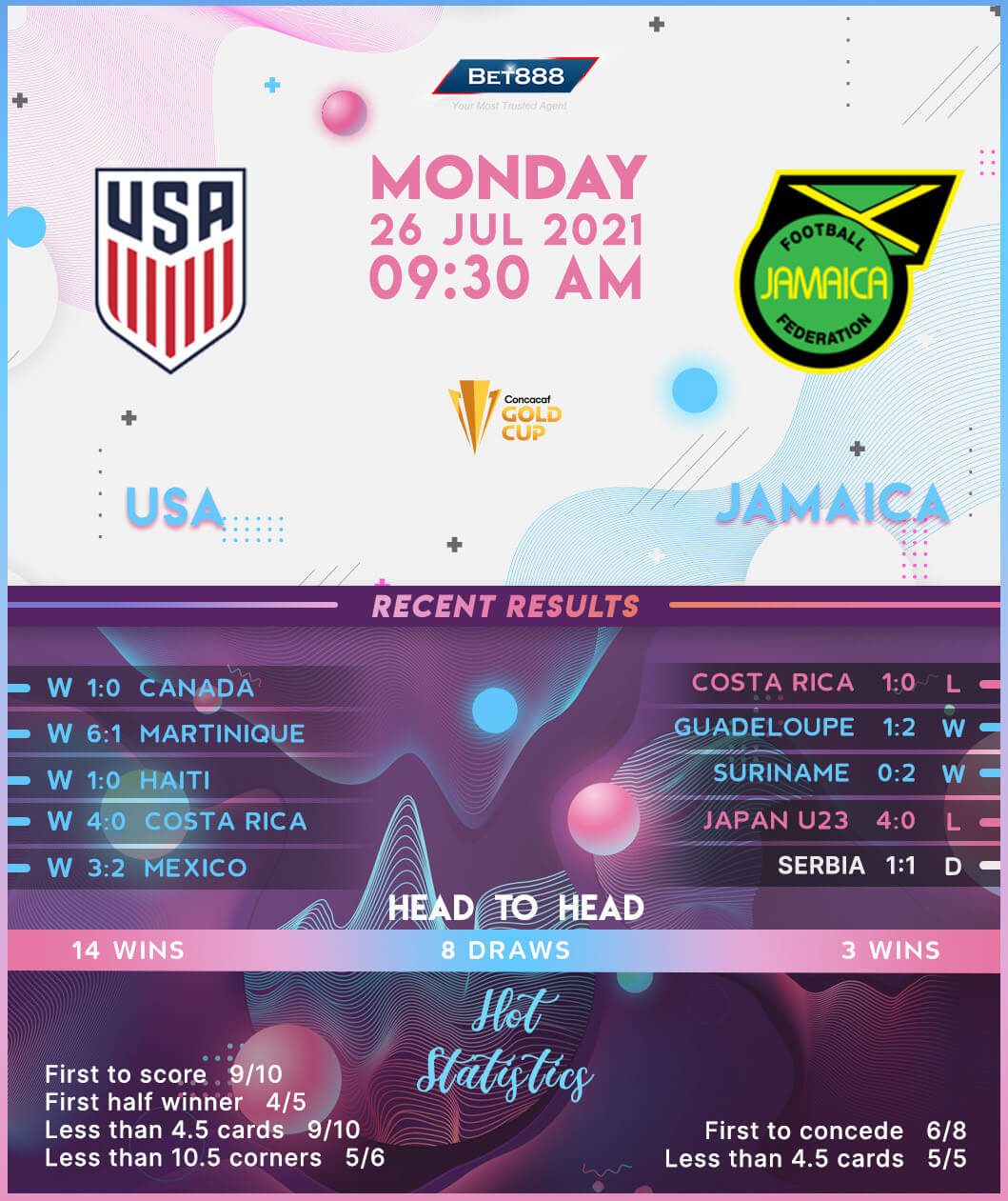 Encouraged by a stunning CONCACAF Nations League success in early June, the United States took Group B by storm, winning all three group stage matches by an aggregate score of 8-1. Delivering action from the onset, the ‘Yanks’ broke the deadlock by the 15th minute in each of their three group stage outings. Since failing to negotiate their 1985 Gold Cup group phase campaign, the ‘Stars and Stripes’ have qualified for the tournament knock-outs in each of their subsequent 17 attempts. Adding to their confidence, the USA have advanced to the semi-finals from their last ten Gold Cup quarter-final appearances. Furthermore, they have defeated Jamaica in both of their previous Gold Cup meetings by over 1.5 goals ‘to one,’ winning the first half by the same 1-0 score on each occasion.