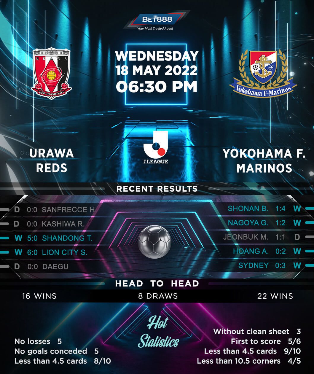 Inspired by an impressive three-game winning league streak, title-bidding Yokohama will be looking to arrest a two-game winless run at Urawa (D1, L1). The ‘Marinos,’ who trail table-topping Kashima Antlers by four points ahead of this round, are scoring at will these days. Since a 2-0 defeat away to Hiroshima in early April, Kevin Muscat’s men have bagged 2+ goals in their last four league outings, averaging three goals per match in this sequence. Furthermore, after going winless in their three inaugural away games of the season (D1, L2), Yokohama have won the last two in a row by a three-goal margin each. Curiously, four of the seven goals they scored across those two victories arrived beyond the 80th minute, highlighting the potential for a cracking game closure.