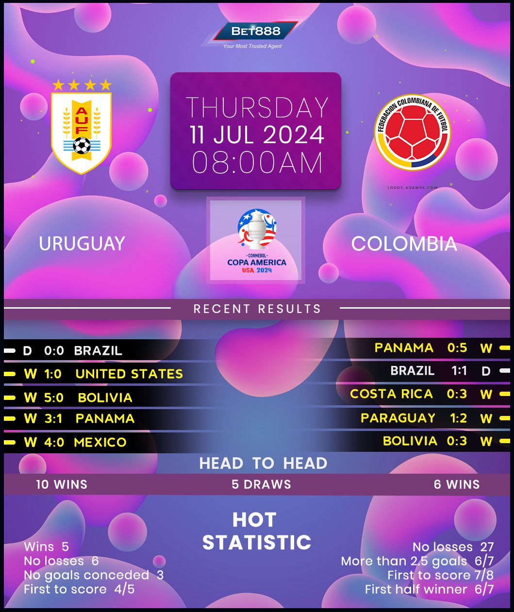 In the meantime, Colombia romped into their third semi-finals across the last four Copa Americas with a scintillating 5-0 win against North American invitees Panama in the quarter-finals. It’s been a superb tournament for Nestor Lozano’s charges, as they’ve won three of their four matches on United States soil, except for a 1-1 draw against Brazil on matchday three. That’s the only blemish on Colombia’s free-scoring form at the tournament, as they’ve netted 2+ goals across their three remaining outings, averaging 3.33 goals per game. Colombia’s rip-roaring form at Copa America has extended their formidable unbeaten streak to 27 matches (W21, D6), which stretches back to February 2022. But on the downside, they’ve not outgunned Uruguay in regulation time since 2014 (D4, L2 since).