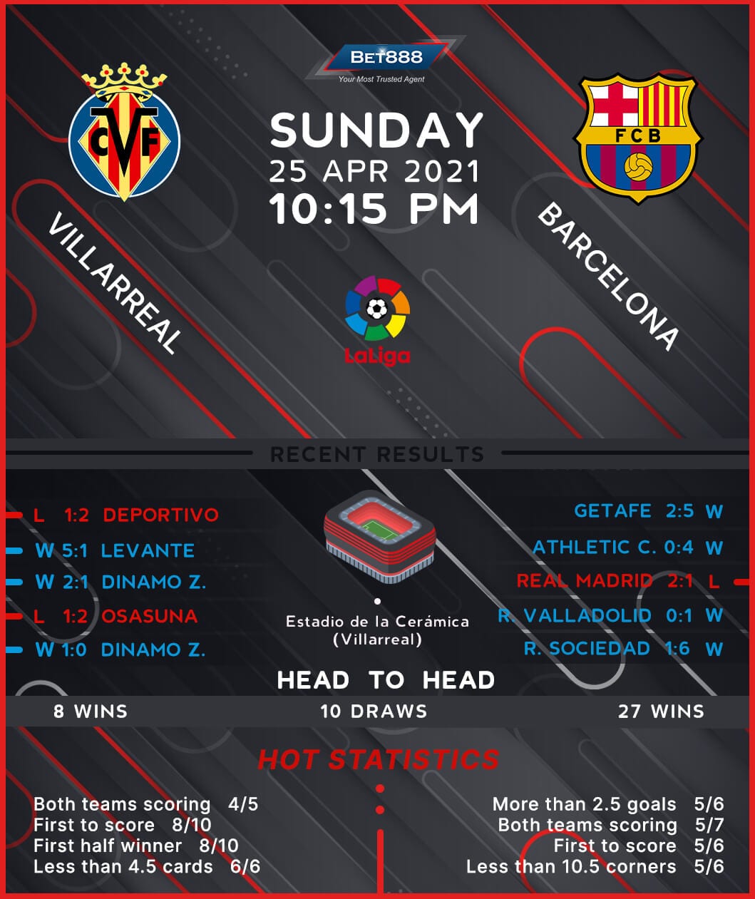 Barcelona’s hot pursuit of the La Liga title continues this weekend as they head to the Estadio de la Ceramica to take on an unpredictable Villarreal side.