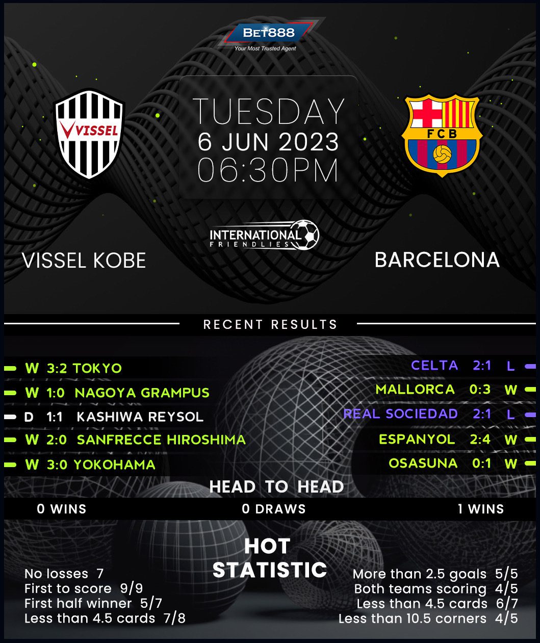 Kobe’s free-scoring first-half showing paved the way for a goal-glutted 3-2 home win over Tokyo at the weekend, cementing their place at the top of the J1 League standings and bolstering their spirits ahead of this mouth-watering exhibition match against Barcelona. Adding to the Japanese side’s confidence, they head into proceedings unbeaten in seven consecutive games in all competitions (W5, D2). Considering they netted at least two goals in five of those seven outings, the best defensive team in the 2022/23 La Liga season won’t face an easy task. Moreover, Takayuki Yoshida’s men have kept a clean sheet in three of their last five matches, suggesting they could be a tough nut to crack on a good day.
