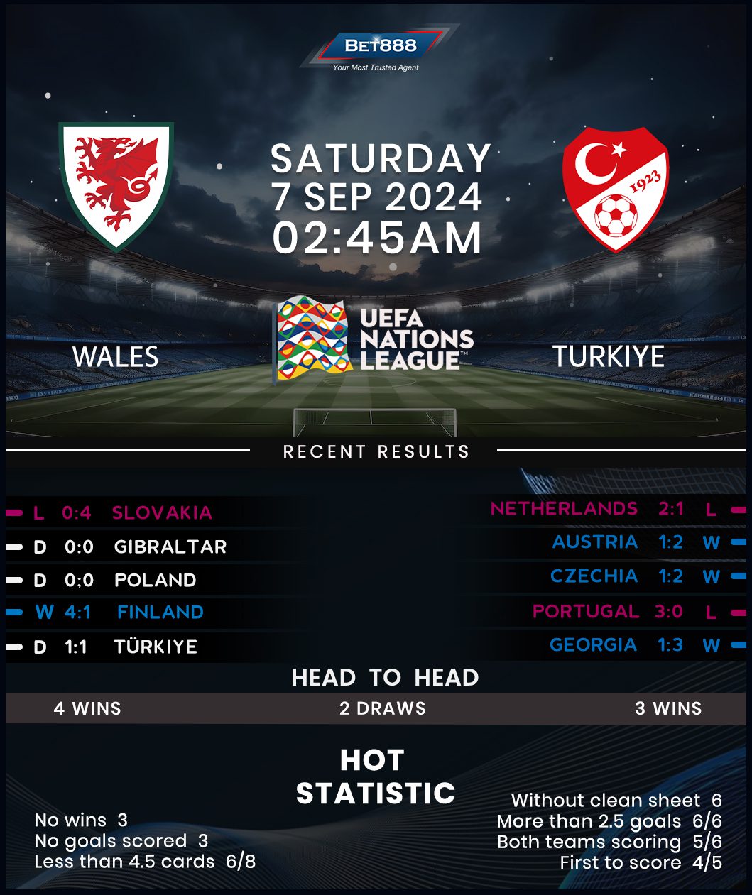 As for Turkey, they pulled off a stunning Euro 2024 campaign, reaching the quarter-finals at the grandest continental stage for the first time since 2008, only to throw away a halftime lead in a 2-1 defeat to the Netherlands. The Turks held Wales winless in both their Euro 2024 qualifiers last year (W1, D1) and will be out to beat them on this turf for the first time in their history. Vincenzo Montella’s side earned promotion from League C in the previous Nations League edition despite slumping to a gut-wrenching 2-1 away loss to the Faroe Islands. While they’ll be keen to avoid the same fate in Cardiff, it’s worth noting that the Crescent Stars haven’t won any of their last five matches on foreign soil (D2, L3).