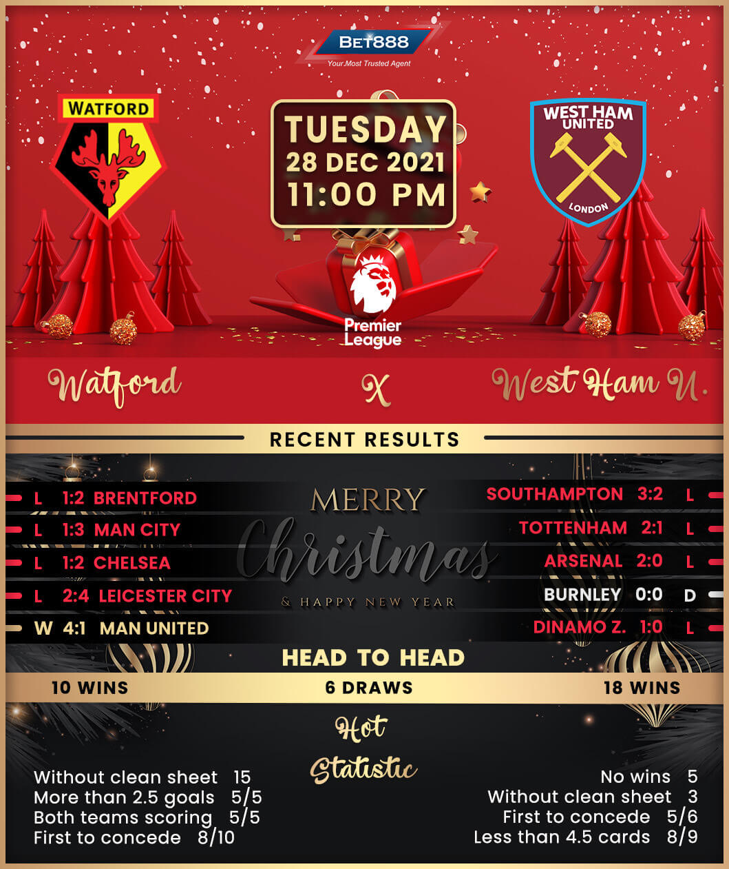 Vicarage Road is the venue as 17th-placed Watford seek their first Premier League points in December against an out-of-form West Ham United side.