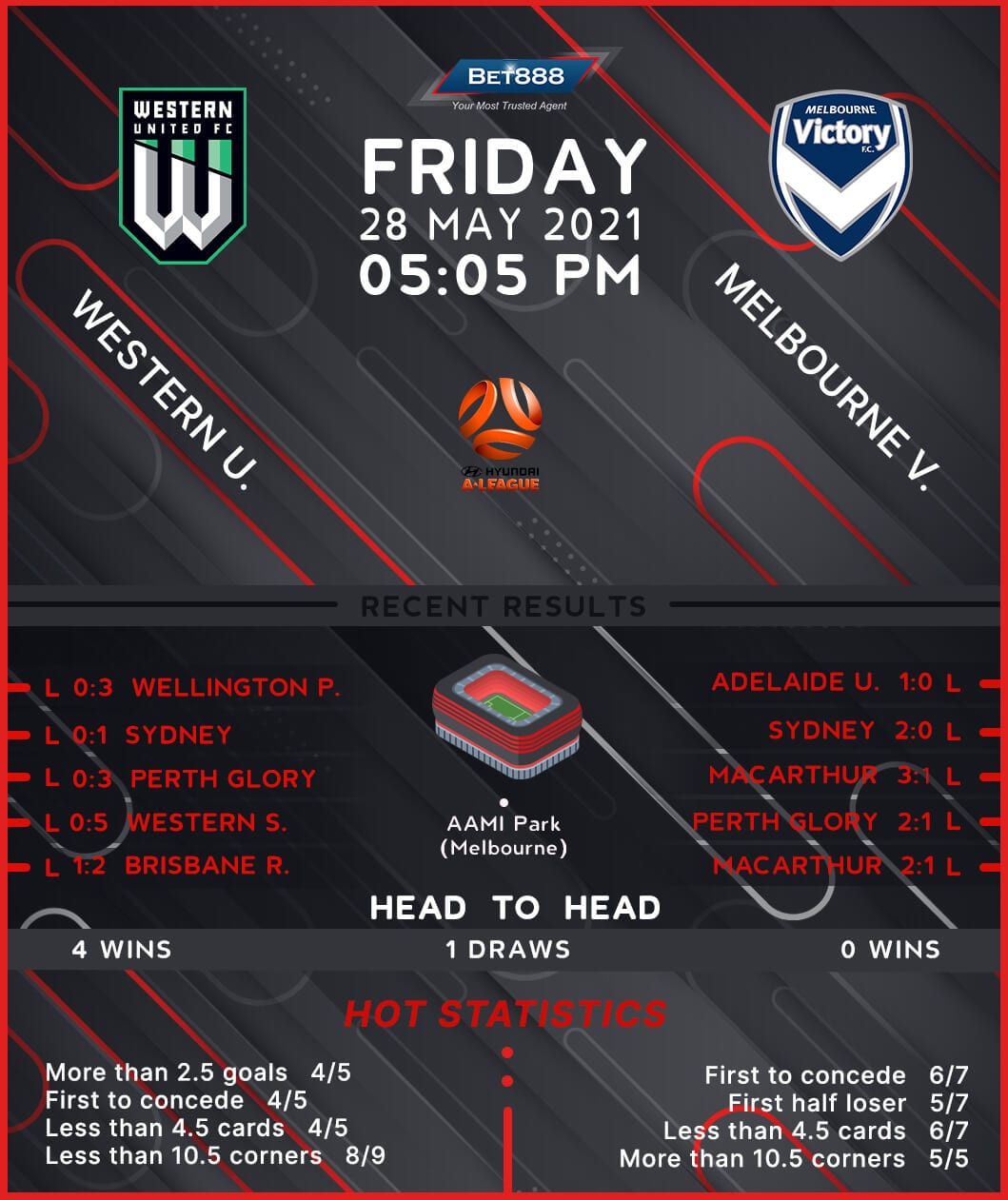 Western United head into proceedings in the midst of a rough patch, having lost each of their last five A-League matches by an aggregate score of 14-1. Following a 2-0 home victory over Newcastle Jets in late April, the hosts have drawn a blank in five of their subsequent six league outings, including the last four in a row. If there’s any consolation for Western United, they go up against a side they have never lost to in the top flight across their five meetings so far (W4, D1), netting an intimidating average of 3.00 goals per win. A narrow 1-0 loss to Sydney in their most recent home league fixture ended Western’s run of five consecutive home games in A-League without a loss (W5, D1). They have also failed to find the net in a league second-highest 36% of their home league matches this term.