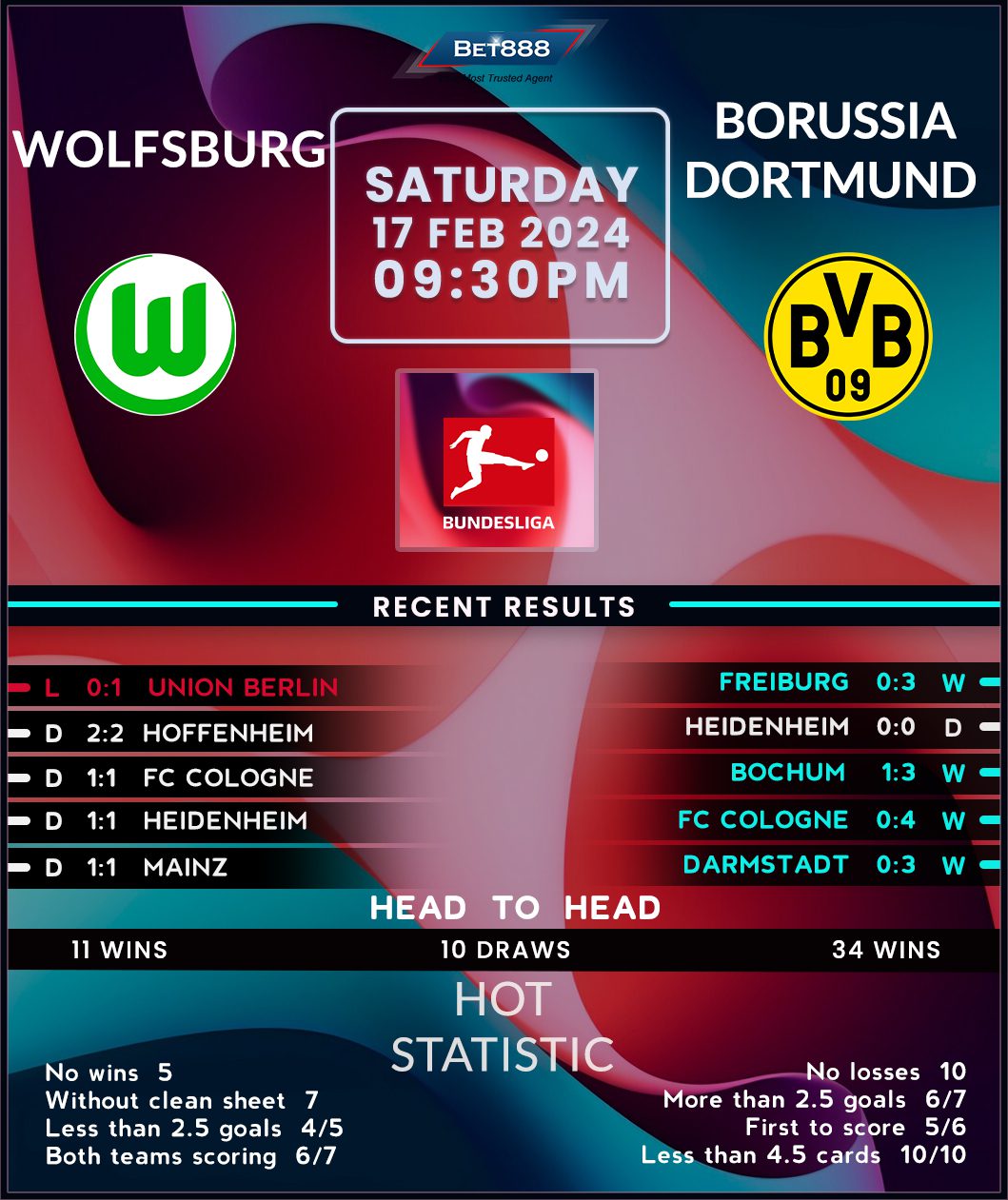 Volkswagen Arena is the venue as Wolfsburg and Borussia Dortmund go head-to-head in a tasty-looking Bundesliga clash.