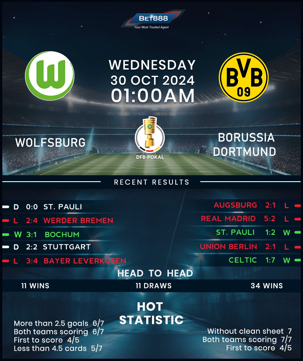 Volkswagen Arena is the venue as Wolfsburg and Borussia Dortmund lock horns in a mouth-watering DFB-Pokal tie.