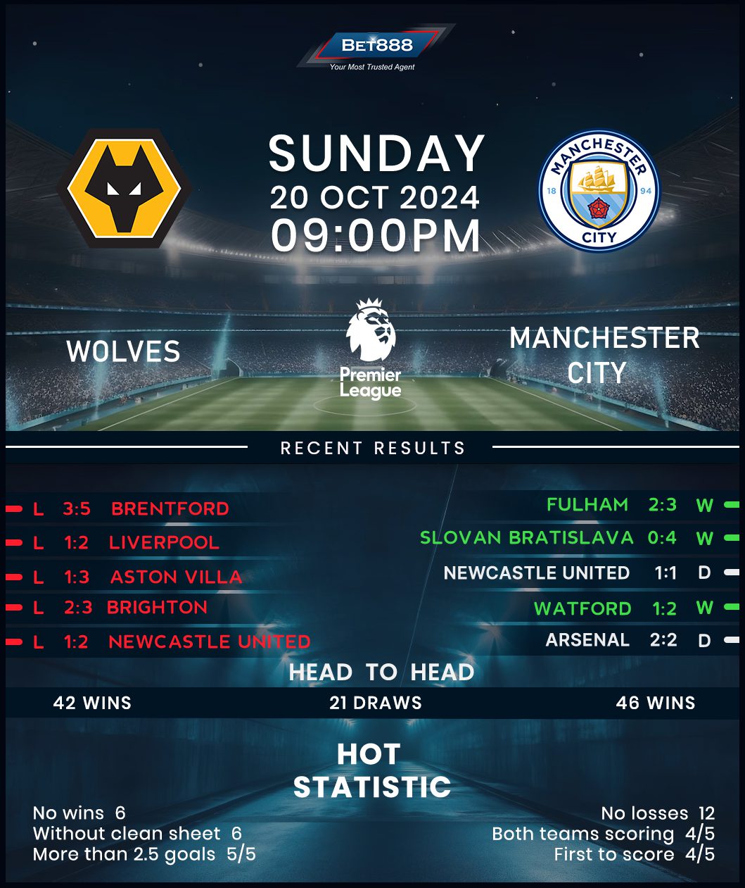 Molineux Stadium is the venue as Wolverhampton Wanderers and Manchester City go head-to-head in a lopsided Premier League fixture.