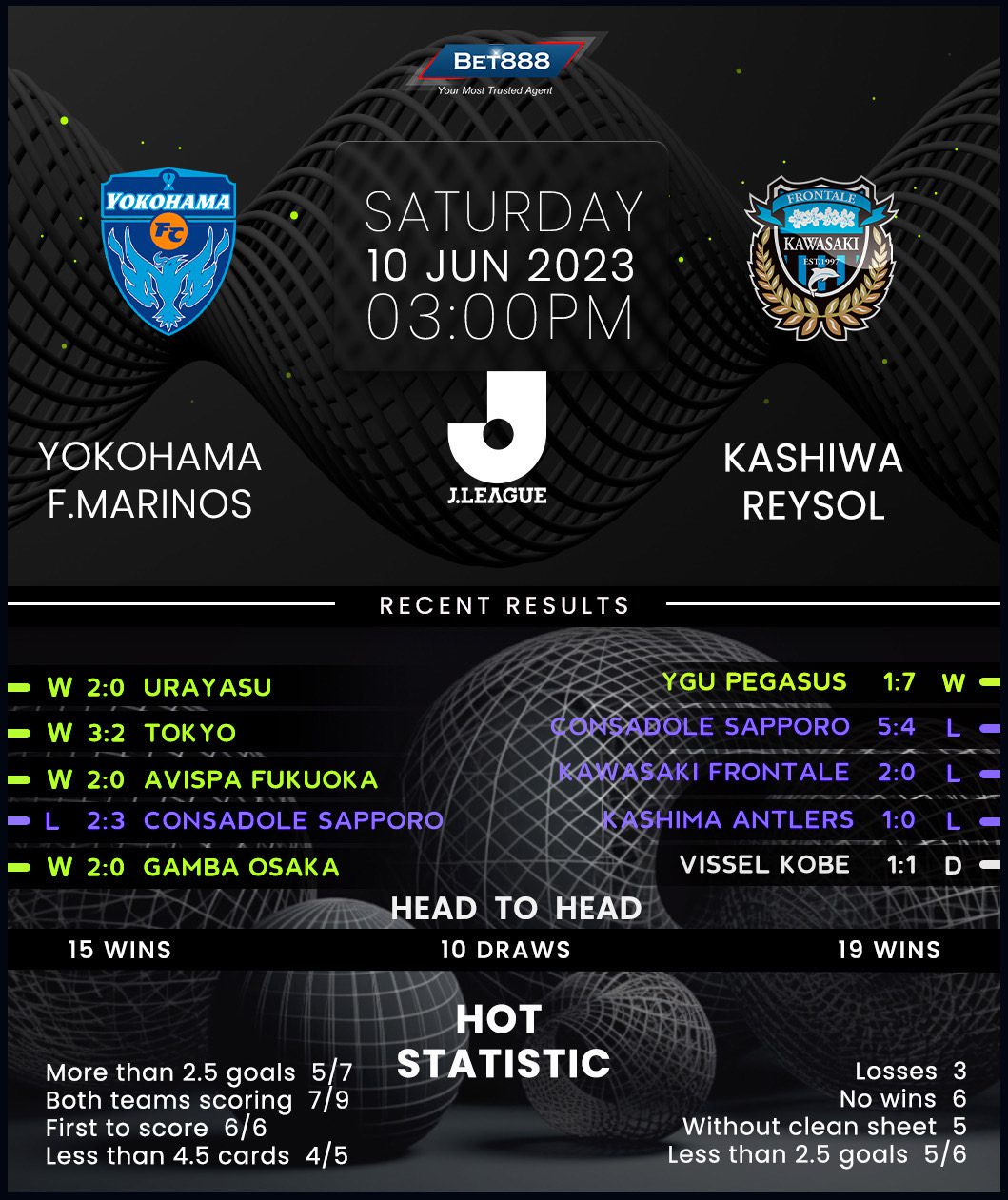 Yokohama’s J1 League title defense is going according to plan as they begin this round level on points with table-topping Vissel Kobe, albeit the latter has a game in hand. Since a 2-1 loss at Albirex Niigata in mid-May, the hosts have gone into overdrive, racking up three straight league victories by an aggregate score of 7-2. Delivering action from the get-go, they opened the scoring in the first half in all three wins, including a first-minute opener in a 3-2 triumph at Tokyo last time out. Back to the Nissan Stadium, where they’ve yet to lose a league match this season (W5, D2), Kevin Muscat’s men are odds-on favorites to beat Kashiwa as they did via an emphatic 4-0 scoreline in this corresponding fixture last season.