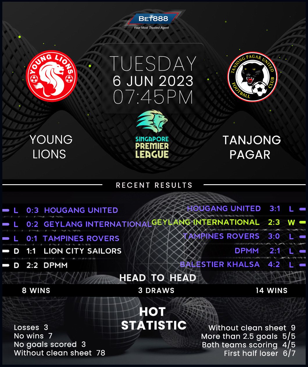 Last season’s bottom-place finish in the Singapore Super League was no fluke as Young Lions continue to struggle in top-flight action, having won just once in 12 matches at the start of the 2023 campaign (D2, L9). Nailed to the foot of the table as the only side yet to hit double digits in terms of points (5) and morally crushed after three consecutive defeats ‘to nil,’ they look like a doomed outfit ahead of the kick-off. That’s not to mention that they’ve lost their last two league meetings with Tanjong by an aggregate score of 10-2. But a 4-2 win in this corresponding fixture in 2022 could offer Young Lions a glimmer of hope that they could end a four-game winless league run on home turf (D2, L2).